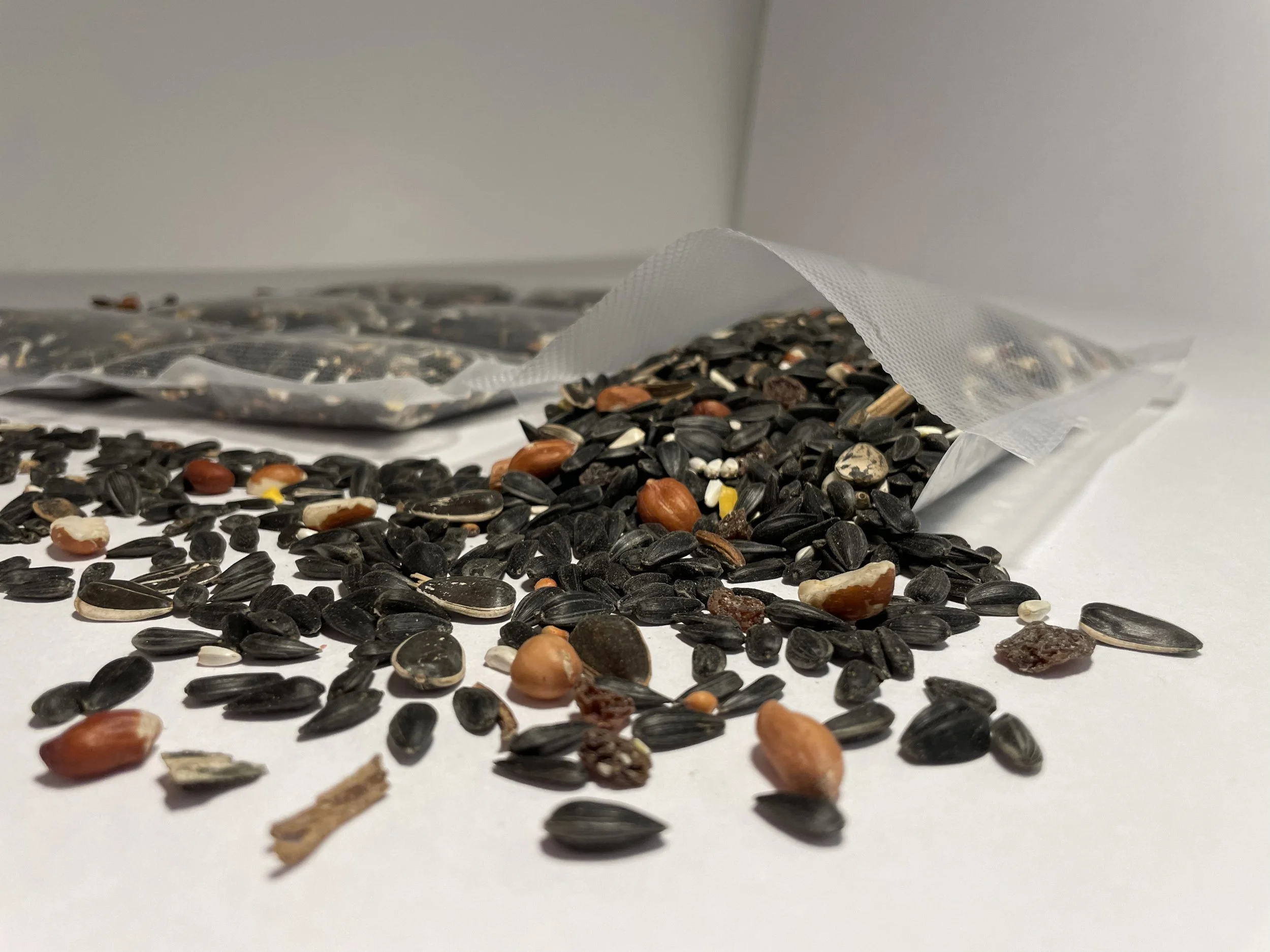 Where does the current-style of traditionally bagged wild birdseed fall short?